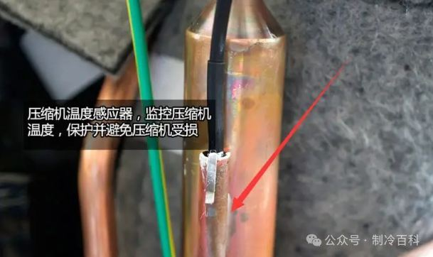 The fundamental way to avoid casing overheating and protect the compressor is to correctly handle the above-mentioned problems and install a temperature protector on the casing. The most commonly used casing temperature protector is placed in a suitable place on the casing. When the casing temperature is too high, the disc-shaped bimetallic strip senses the temperature and deforms, causing the contacts in the circuit to jump open and the compressor to stop.